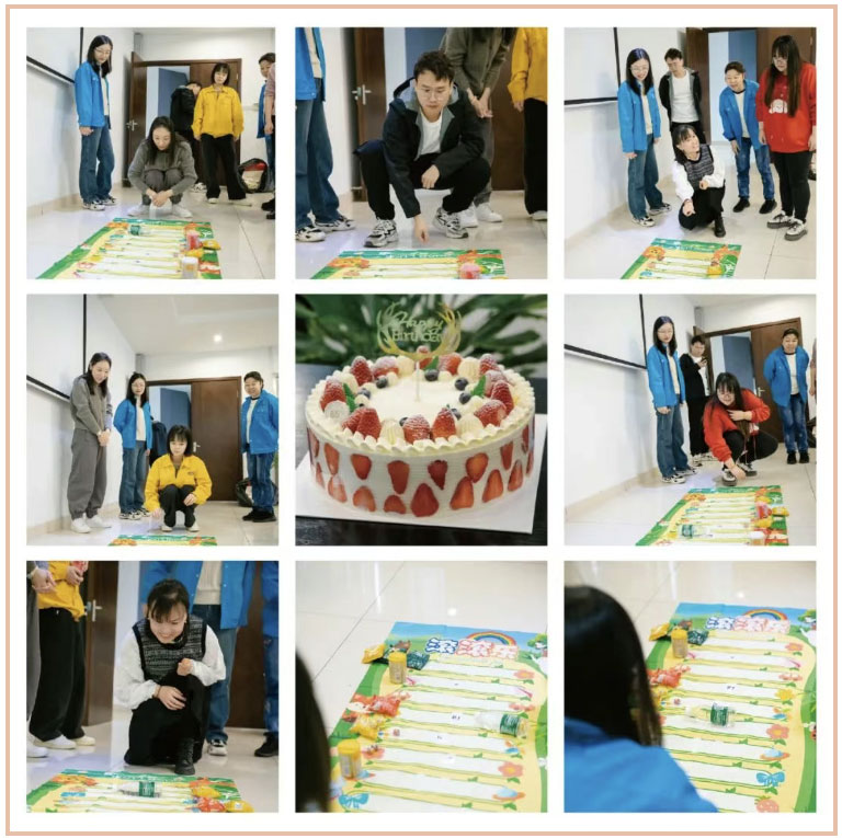 “滾滾樂”游戲環(huán)節(jié)掀起全場高潮。員工們?nèi)橥度耄邝蛔訚L動間,或屏氣斂息,或歡呼雀躍,游戲的快樂讓大家暫時(shí)忘卻工作的疲憊,全身心沉浸在歡樂之中。有人幸運(yùn)斬獲小獎(jiǎng)品,雖不是昂貴物件,卻被大家寶貝似的捧在手心,嘴角的笑意藏都藏不住,小小的獎(jiǎng)品承載著大大的快樂,也讓這場生日會的氛圍愈發(fā)溫馨愉悅 。
